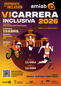 La entidad de Utilidad Pública amiab ya tiene una nueva cita dentro de su ‘Movimiento por la inclusión’. Ya se han abierto las inscripciones para su VI Carrera inclusiva en Albacete ‘Memorial Encarnación Rodríguez’. Todas las personas interesadas pueden inscribirse a través del enlace https://www.inscripcionesweb.es/es/evento/amiab.zhtm y de forma presencial en las instalaciones de la asociación amiab Albacete en la calle Oscar Wilde, 18 en horario de 8:30 a 14:00 horas.