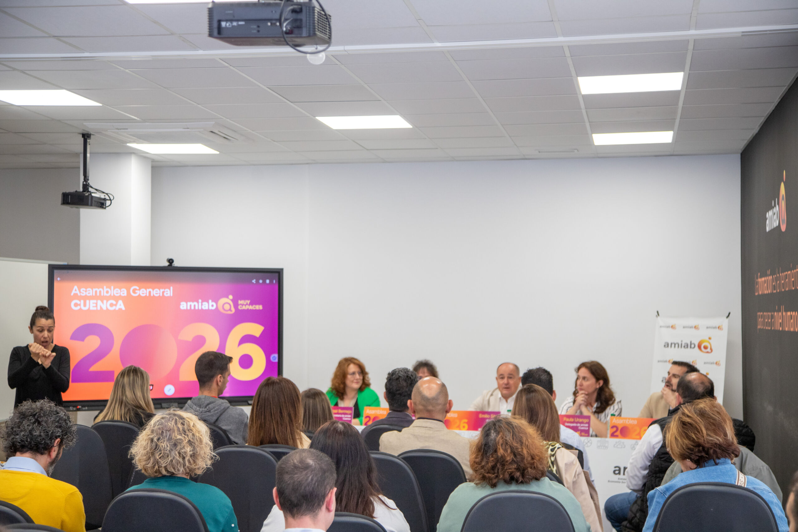 A la clausura de la asamblea han asistido la delegada provincial de Servicios Sociales, Susana Zomeño; la vicepresidenta 3ª de la Diputación, Emma Cano y la concejala de Servicios Sociales, Igualdad y Cooperación, Estela Soliva, quienes han destacado la labor de amiab no solo en la capital y la provincia, sino en la región y en toda España.